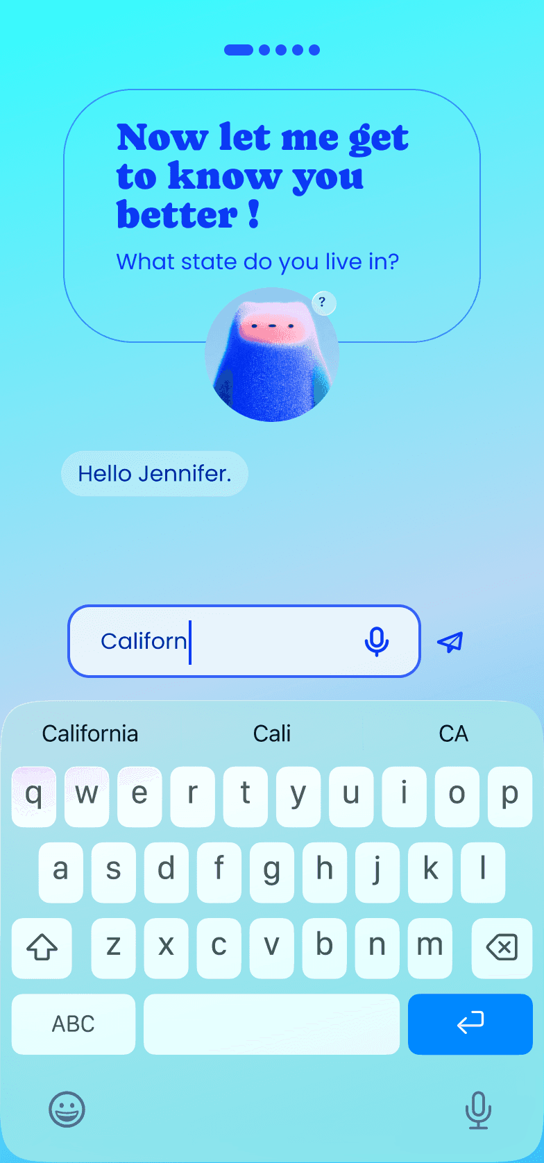 Introduce an AI companion character for guided, conversational onboarding and provide contextual help. The character adapts tone based on responses and celebrates milestones, creating emotional connection from the start.