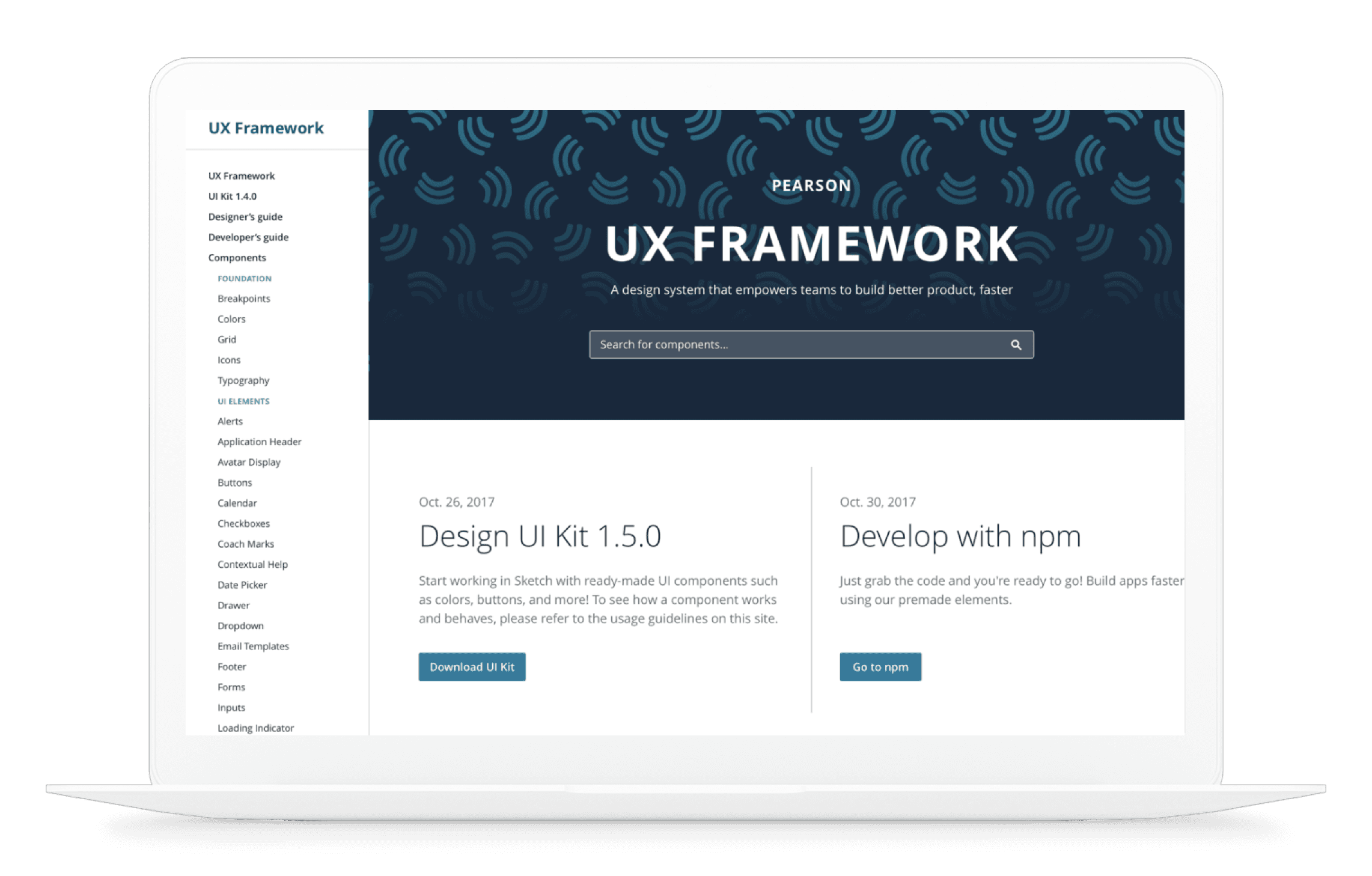 Being one of the first member in Pearson’s first framework, my task was to build and maintain a system that provides a unified set of UI, design rules and patterns across all Pearson Higher Ed digital products